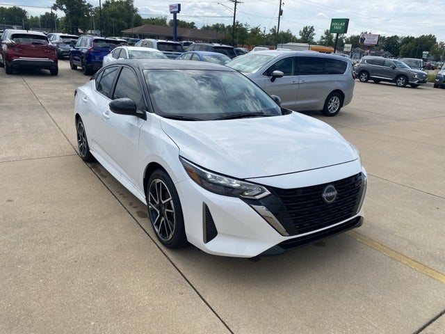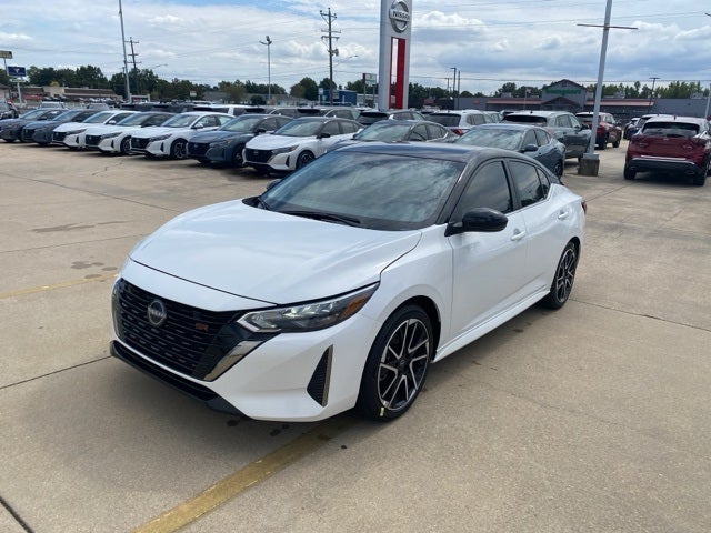 ** Alloy Wheels / Premium Wheels, ** Bluetooth®, Hands Free, ** Cruise Control, ** Keyless Entry, ** Premium Sound System / Premium Audio, ** Satellite Radio, ** Steering Wheel Controls, CVT with Xtronic, Sport Cloth, 18 Alloy Wheels, 4-Wheel Disc Brakes, 8 Speakers, ABS brakes, Air Conditioning, Alloy wheels, AM/FM radio: SiriusXM, Auto High-beam Headlights, Automatic temperature control, Blind Spot Warning, Brake assist, Bumpers: body-color, Delay-off headlights, Driver door bin, Driver vanity mirror, Dual front impact airbags, Dual front side impact airbags, Electronic Stability Control, Four wheel independent suspension, Front anti-roll bar, Front Bucket Seats, Front Center Armrest, Front dual zone A/C, Front reading lights, Fully automatic headlights, Heated door mirrors, Heated Front Bucket Seats, Heated front seats, Illuminated entry, Knee airbag, Leather Shift Knob, Low tire pressure warning, NissanConnect featuring Apple CarPlay and Android Auto, Occupant sensing airbag, Outside temperature display, Overhead airbag, Overhead console, Panic alarm, Passenger door bin, Passenger vanity mirror, Power door mirrors, Power steering, Power windows, Radio data system, Radio: AM/FM w/RDS/MP3/Aux-In, Rear anti-roll bar, Rear Parking Sensors, Rear seat center armrest, Rear side impact airbag, Rear window defroster, Remote keyless entry, Security system, Speed control, Speed-sensing steering, Split folding rear seat, Spoiler, Sport Cloth Seat Trim, Steering wheel mounted audio controls, Tachometer, Telescoping steering wheel, Tilt steering wheel, Traction control, Trip computer, Turn signal indicator mirrors, Variably intermittent wipers, CVT with Xtronic, Sport Cloth. Aspen White Tricoat/Super Black 2025 Nissan Sentra SR FWD CVT with Xtronic 2.0L I4 DOHC