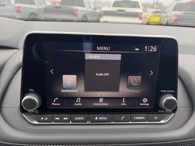 - Radio: AM/FM NissanConnect -inc: 6 speakers plus 2 tweeters, Apple CarPlay, Android Auto, 8" color touch screen display, Bluetooth®, 2 front USB type-C, Wi-Fi hotspot and NissanConnect Services powered by SiriusXM