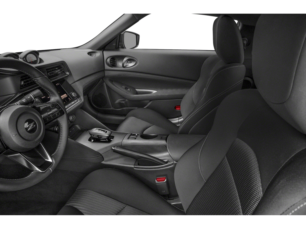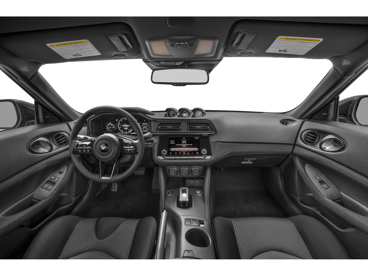 ** Alloy Wheels / Premium Wheels, ** Bluetooth®, Hands Free, ** Cruise Control, ** Keyless Entry, ** Premium Sound System / Premium Audio, ** Satellite Radio, ** Steering Wheel Controls, 4-Wheel Disc Brakes, 6 Speakers, ABS brakes, Air Conditioning, Alloy wheels, AM/FM radio: SiriusXM, Anti-whiplash front head restraints, Apple CarPlay/Android Auto, Auto High-beam Headlights, Auto-dimming Rear-View mirror, Automatic temperature control, Blind Spot Warning, Brake assist, Bumpers: body-color, Delay-off headlights, Driver door bin, Driver vanity mirror, Dual front impact airbags, Dual front side impact airbags, Electronic Stability Control, Four wheel independent suspension, Front anti-roll bar, Front Bucket Seats, Front Center Armrest, Front reading lights, Fully automatic headlights, Leather Shift Knob, Leather steering wheel, Low tire pressure warning, Occupant sensing airbag, Outside temperature display, Overhead airbag, Panic alarm, Passenger door bin, Passenger vanity mirror, Power door mirrors, Power steering, Power windows, Radio data system, Radio: Nissan Audio w/6 Speakers, Rear anti-roll bar, Rear window defroster, Remote keyless entry, Security system, Speed control, Speed-sensing steering, Steering wheel mounted audio controls, Tachometer, Telescoping steering wheel, Tilt steering wheel, Traction control, Trip computer, Turn signal indicator mirrors, Variably intermittent wipers, Voltmeter, Wheels: 18 x 9 Styled Alloy, Woven Cloth Seat Trim. Pearl White Tricoat/Super Black 2026 Nissan Z Sport RWD 9-Speed Automatic 3.0L V6