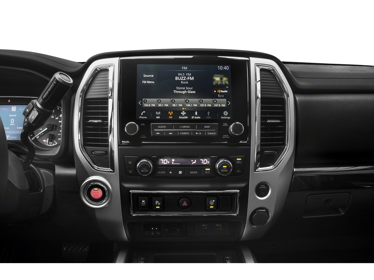 ** Alloy Wheels / Premium Wheels, ** Bluetooth®, Hands Free, ** Cruise Control, ** Keyless Entry, ** Premium Sound System / Premium Audio, ** Satellite Radio, ** Steering Wheel Controls, 4WD, 110V/12V Outlets In Back Of Center Console, 2 Illuminated USB-A Ports In Back Of Center Console, 3.692 Axle Ratio, 4-Wheel Disc Brakes, 6 Speakers, ABS brakes, Accessory Utility Package, Air Conditioning, All Season Floor Mats, Alloy wheels, AM/FM radio: SiriusXM, Auto High-beam Headlights, Auto-Dimming Rear-View Mirror, Blind Spot Warning, Brake assist, Bumper Step, Bumpers: chrome, Carpet Floor Mats (L95), Chrome Interior Door Locks, Cloth Seat Trim, Convex Spotter Mirror, Dedicated Cell Phone Holder, Driver door bin, Driver vanity mirror, Dual front impact airbags, Dual front side impact airbags, Dual Zone Automatic HVAC, Electronic Stability Control, Emergency communication system: NissanConnect Services, Front & Rear Parking Sensors, Front anti-roll bar, Front Center Armrest w/Storage, Front reading lights, Front Split Bench Seat (40/20/40), Front wheel independent suspension, Fully automatic headlights, Heated door mirrors, Heated Front Captain's Chairs, Illuminated entry, Intelligent Key System, Knee airbag, Leather-Wrapped Steering Wheel, Low tire pressure warning, NissanConnect featuring Apple CarPlay and Android Auto, Occupant sensing airbag, Off Road Protection Package, Outside temperature display, Overhead airbag, Overhead console, Panic alarm, Passenger door bin, Passenger vanity mirror, Power door mirrors, Power Sliding Rear Window w/Defogger, Power steering, Power windows, Radio data system, Radio: NissanConnect AM/FM, Radio: NissanConnect w/Navigation, Rear anti-roll bar, Rear HVAC Vents, Rear Parking Sensors, Rear seat center armrest, Rear step bumper, Rear window defroster, Remote Engine Start on Key Fob, Remote keyless entry, Security system, Speed control, Speed-sensing steering, Speed-Sensitive Wipers, Splash Guards, Split folding rear seat, Steering wheel mounted audio controls, SV Convenience Package, Tachometer, Telescoping steering wheel, Tilt steering wheel, Traction control, Traffic Sign Recognition (TSR), Trailer Hitch, Trip computer, Variably intermittent wipers, Voltmeter, Wheels: 18 x 8 Silver Painted Alloy, Wheels: 20 x 8 Chrome, 4WD. Recent Arrival! Odometer is 1567 miles below market average! Deep Blue Pearl Metallic 2021 Nissan Titan 4D Crew Cab SV 5.6L V8 DOHC 32V 400hp 9-Speed Automatic 4WD