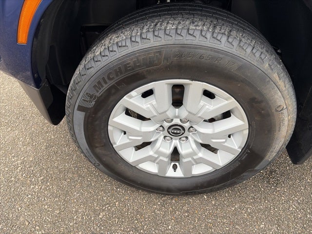 ** Alloy Wheels / Premium Wheels, ** Bluetooth®, Hands Free, ** Cruise Control, ** Keyless Entry, ** Premium Sound System / Premium Audio, ** Satellite Radio, ** Steering Wheel Controls, 4WD, 17 Alloy Wheels, 3.692 Axle Ratio, 4-Wheel Disc Brakes, 6 Speakers, ABS brakes, Air Conditioning, Alloy wheels, AM/FM radio: SiriusXM, Anti-whiplash front head restraints, Apple CarPlay/Android Auto, Blind Spot Warning, Brake assist, Bumpers: body-color, Carpeted Floor Mats, Delay-off headlights, Driver door bin, Driver vanity mirror, Dual front impact airbags, Dual front side impact airbags, Electronic Stability Control, Front anti-roll bar, Front Bucket Seats, Front Center Armrest, Front reading lights, Front wheel independent suspension, Fully automatic headlights, High Beam Assist (HBA), Illuminated entry, Intelligent Cruise Control, Knee airbag, Lane Departure Warning System, Low tire pressure warning, Occupant sensing airbag, Overhead airbag, Panic alarm, Passenger door bin, Passenger vanity mirror, Power door mirrors, Power driver seat, Power steering, Power windows, Premium Cloth Seat Trim, Radio data system, Radio: SXM/AM/FM/AUX/USB Audio System w/6 Speakers, Rear anti-roll bar, Rear Automatic Braking (RAB), Rear Cross Traffic Alert (RCTA), Rear seat center armrest, Rear Sonar System, Rear step bumper, Remote keyless entry, Security system, Speed control, Speed-sensing steering, Splash Guards, Split folding rear seat, Steering wheel mounted audio controls, Tachometer, Technology Package, Tilt steering wheel, Tow Package, Tow/Haul Mode Switch, Traction control, Trip computer, Variably intermittent wipers, Voltmeter, 4WD. Deep Blue Pearl 2023 Nissan Frontier 4D Crew Cab SV 3.8L DI DOHC 24V V6 9-Speed Automatic 4WD