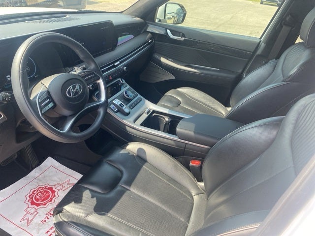 ** Alloy Wheels / Premium Wheels, ** Bluetooth®, Hands Free, ** Cruise Control, ** Keyless Entry, ** Premium Sound System / Premium Audio, ** Satellite Radio, ** Steering Wheel Controls, 12 Speakers, 3.648 Axle Ratio, 3rd row seats: split-bench, 4-Wheel Disc Brakes, ABS brakes, Air Conditioning, Alloy wheels, AM/FM radio: SiriusXM, Apple CarPlay & Android Auto, Auto High-beam Headlights, Auto-dimming door mirrors, Auto-dimming Rear-View mirror, Auto-leveling suspension, Automatic temperature control, Brake assist, Bumpers: body-color, Cargo Net, Cargo Tray, Carpeted Floor Mats, Compass, Delay-off headlights, Driver door bin, Driver vanity mirror, Dual front impact airbags, Dual front side impact airbags, Electronic Stability Control, Emergency communication system, Exterior Parking Camera Rear, First Aid Kit, Four wheel independent suspension, Front anti-roll bar, Front Bucket Seats, Front Center Armrest, Front dual zone A/C, Front reading lights, Fully automatic headlights, Garage door transmitter: HomeLink, harman/kardon® Speakers, Heads-Up Display, Heated & Ventilated Front Bucket Seats, Heated door mirrors, Heated front seats, Heated rear seats, Heated steering wheel, Illuminated entry, Knee airbag, Low tire pressure warning, Memory seat, Navigation System, Occupant sensing airbag, Option Group 01, Outside temperature display, Overhead airbag, Overhead console, Panic alarm, Passenger door bin, Passenger vanity mirror, Power door mirrors, Power driver seat, Power Liftgate, Power moonroof, Power passenger seat, Power steering, Power windows, Premium Nappa Leather Seat Trim, Radio data system, Radio: AM/FM/MP3 Premium Audio System, Rain sensing wipers, Rear air conditioning, Rear anti-roll bar, Rear audio controls, Rear reading lights, Rear side impact airbag, Rear window defroster, Rear window wiper, Reclining 3rd row seat, Remote keyless entry, Roof Rack Cross Rails, Security system, Speed control, Speed-sensing steering, Split folding rear seat, Spoiler, Steering wheel mounted audio controls, Tachometer, Telescoping steering wheel, Tilt steering wheel, Traction control, Trip computer, Turn signal indicator mirrors, Variably intermittent wipers, Ventilated front seats, Ventilated rear seats, Wheels: 20 x 7.5J Calligraphy Exclusive Alloy. Recent Arrival! Hyper White 2024 Clean CARFAX. Hyundai Palisade 4D Sport Utility Calligraphy V6 8-Speed Automatic with SHIFTRONIC AWD
