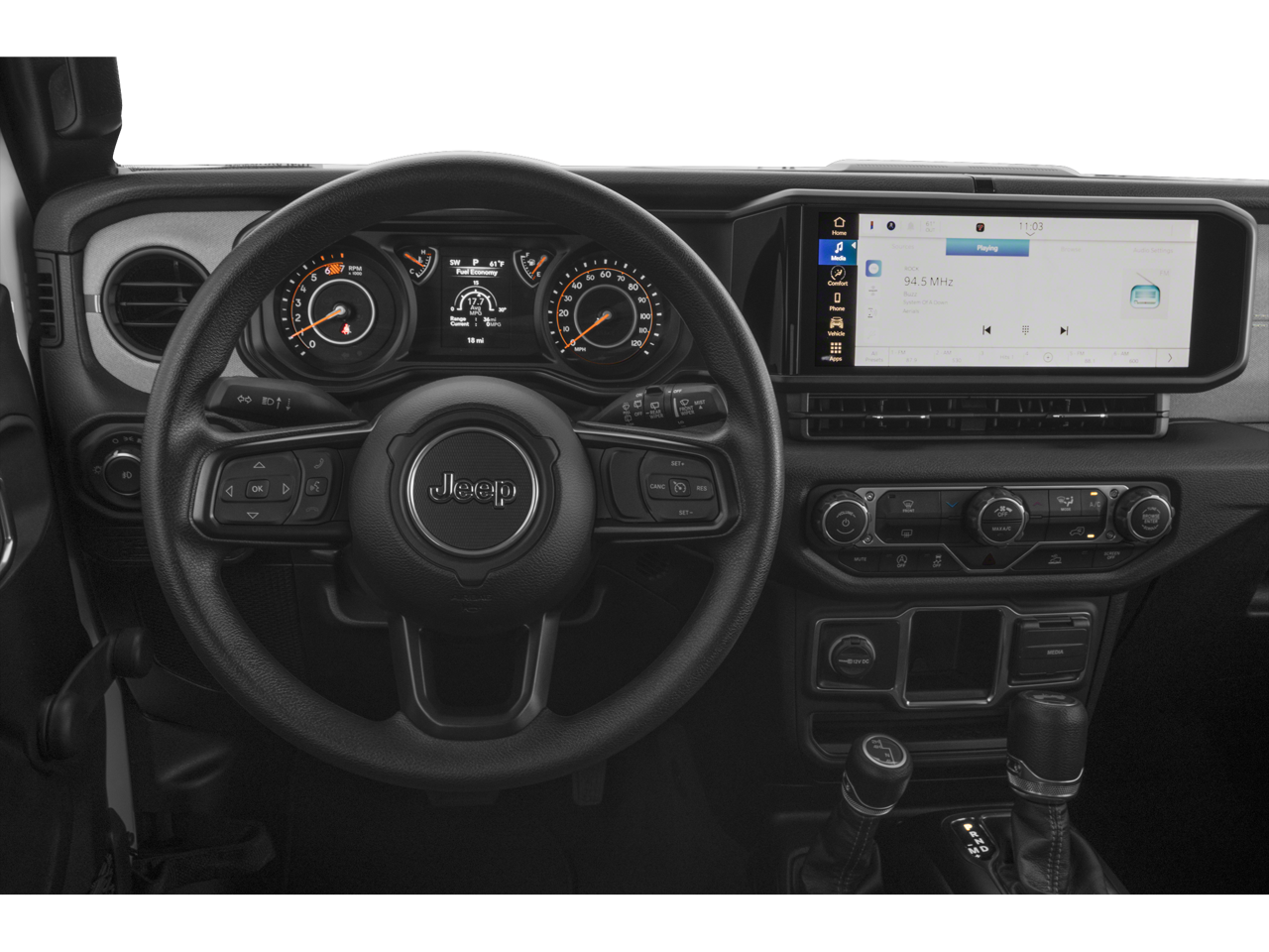 ** Alloy Wheels / Premium Wheels, ** Bluetooth®, Hands Free, ** Cruise Control, ** Keyless Entry, ** Premium Sound System / Premium Audio, ** Satellite Radio, ** Steering Wheel Controls, 110 MPH Vehicle Max Speed Calibration, 2-Door Passive Entry, Front Door Locks, 3.45 Overall Top Gear Ratio, 4-Wheel Disc Brakes, 8 Speakers, ABS brakes, Air Conditioning w/Auto Temperature Control, Air Filtering, AM/FM radio: SiriusXM with 360L, Apple CarPlay/Android Auto, Auxiliary Battery, Brake assist, Cloth Low-Back Bucket Seats, Cluster 7.0 TFT Color Display, Compass, Convenience Group, Delay-off headlights, Driver door bin, Driver vanity mirror, Dual front impact airbags, Dual front side impact airbags, Electronic Stability Control, Emergency/Assistance Call, Front anti-roll bar, Front Bucket Seats, Front Center Armrest w/Storage, Front fog lights, Front reading lights, Heated Front Seats, Heated Steering Wheel, Integrated roll-over protection, Low tire pressure warning, MOPAR All-Weather Floor Mats, Non-Locking Fuel Cap w/o Discriminator, Normal Duty Suspension, Occupant sensing airbag, Outside temperature display, Overhead airbag, ParkView Rear Back-Up Camera, Passenger door bin, Passenger vanity mirror, Power steering, Quick Order Package 22S Sport S, Radio data system, Radio: Uconnect 5 w/12.3 Display, Rear anti-roll bar, Rear reading lights, Remote Start System, Speed control, Start-Stop Dual Battery System, Steering wheel mounted audio controls, Tachometer, Telescoping steering wheel, Tilt steering wheel, Traction control, Trip computer, Universal Garage Door Opener, Variably intermittent wipers, Wheels: 17 x 7.5 Black Steel Styled, Wheels: 17 x 7.5 Gray. Recent Arrival! Silver Zynith Clearcoat 2024 Clean CARFAX. Jeep Wrangler 2D Sport Utility Sport S 2.0L I4 DOHC 8-Speed Automatic 4WD
