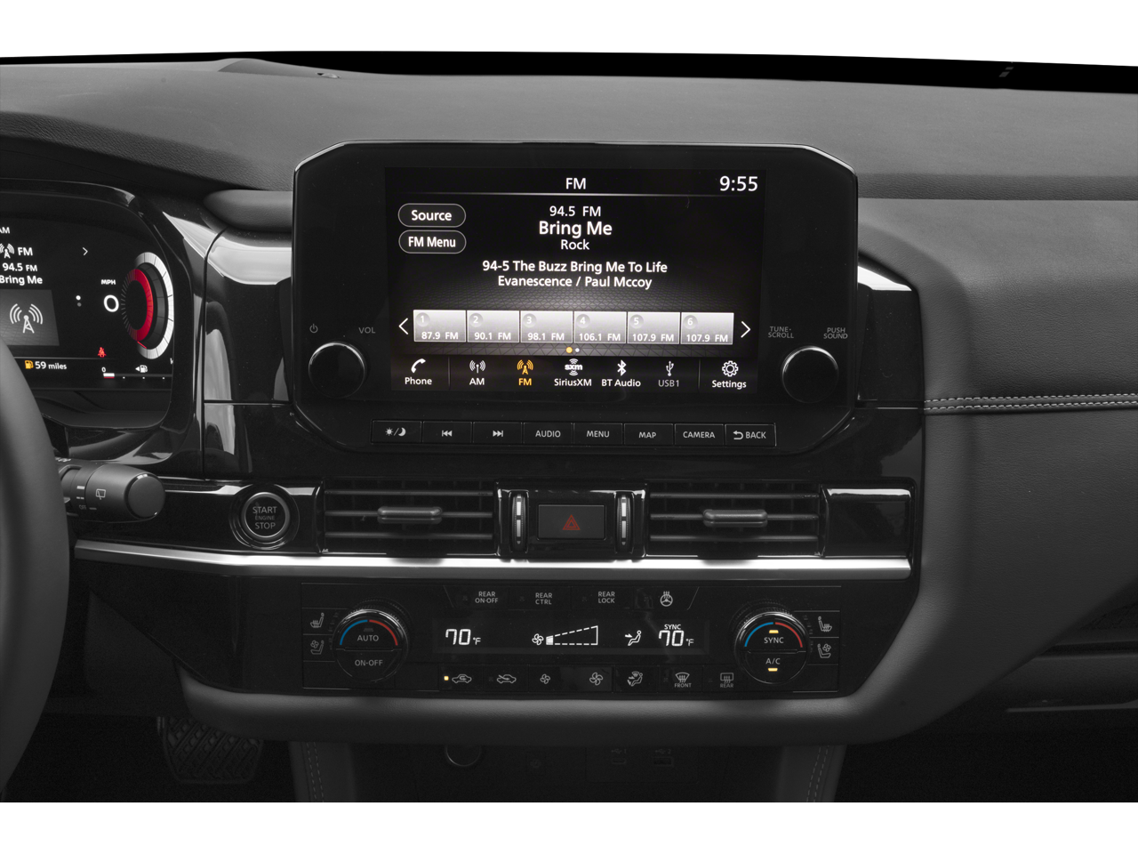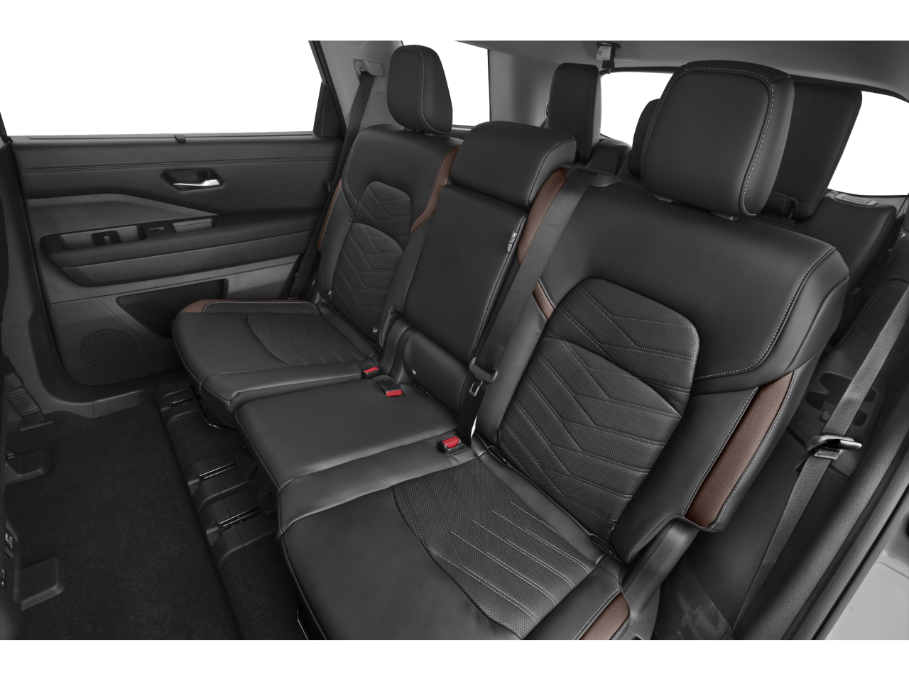 ** Alloy Wheels / Premium Wheels, ** Bluetooth®, Hands Free, ** Cruise Control, ** Keyless Entry, ** Premium Sound System / Premium Audio, ** Satellite Radio, ** Steering Wheel Controls, 4WD, 13 Speakers, 2nd-Row Captain Chairs, 2nd-Row Rear Headrest, 3rd row seats: bench, 4-Wheel Disc Brakes, ABS brakes, Air Conditioning, Alloy wheels, AM/FM radio: SiriusXM, Auto High-beam Headlights, Auto tilt-away steering wheel, Auto-dimming Rear-View mirror, Automatic temperature control, Axle Ratio: 4.334, Black Splash Guards (Set of 4), Bodyside moldings, Bose Premium Audio System, Brake assist, Bumpers: body-color, Captain's Chairs Carpeted Floor Mats (Set of 4), Cargo Area Protector, Cargo Net, Cargo Package, Cross Bars, Delay-off headlights, Driver door bin, Driver vanity mirror, Dual front impact airbags, Dual front side impact airbags, Electronic Stability Control, Emergency communication system, Exterior Parking Camera Rear, First Aid Kit, Four wheel independent suspension, Front anti-roll bar, Front Bucket Seats, Front Center Armrest, Front dual zone A/C, Front reading lights, Fully automatic headlights, Garage door transmitter: HomeLink, Heads-Up Display, Heated & Cooled Front Bucket Seats, Heated door mirrors, Heated front seats, Heated rear seats, Heated steering wheel, Illuminated entry, Knee airbag, Leather steering wheel, Low tire pressure warning, Memory seat, Navigation system: NissanConnect with Navigation and Services, NissanConnect featuring Apple CarPlay and Android Auto, NissanConnect w/Navigation & Services, Occupant sensing airbag, Outside temperature display, Overhead airbag, Overhead console, Panic alarm, Passenger door bin, Passenger vanity mirror, Platinum Captain Chairs Package, Power door mirrors, Power driver seat, Power Liftgate, Power moonroof, Power passenger seat, Power steering, Power windows, Radio data system, Radio: AM/FM Audio System, Rain sensing wipers, Rear air conditioning, Rear anti-roll bar, Rear reading lights, Rear seat center armrest, Rear side impact airbag, Rear window defroster, Rear window wiper, Reclining 3rd row seat, Remote keyless entry, Security system, Semi-Aniline Leather-Appointed Seating Surfaces, Speed control, Speed-sensing steering, Speed-Sensitive Wipers, Split folding rear seat, Spoiler, Steering wheel memory, Steering wheel mounted audio controls, Tachometer, Telescoping steering wheel, Tilt steering wheel, Traction control, Trip computer, Turn signal indicator mirrors, Variably intermittent wipers, Ventilated front seats, Wheels: 20 x 8J Machined Alloy, 4WD. Super Black 2024 Clean CARFAX. Nissan Pathfinder 4D Sport Utility Platinum 3.5L V6 DOHC 9-Speed Automatic 4WD